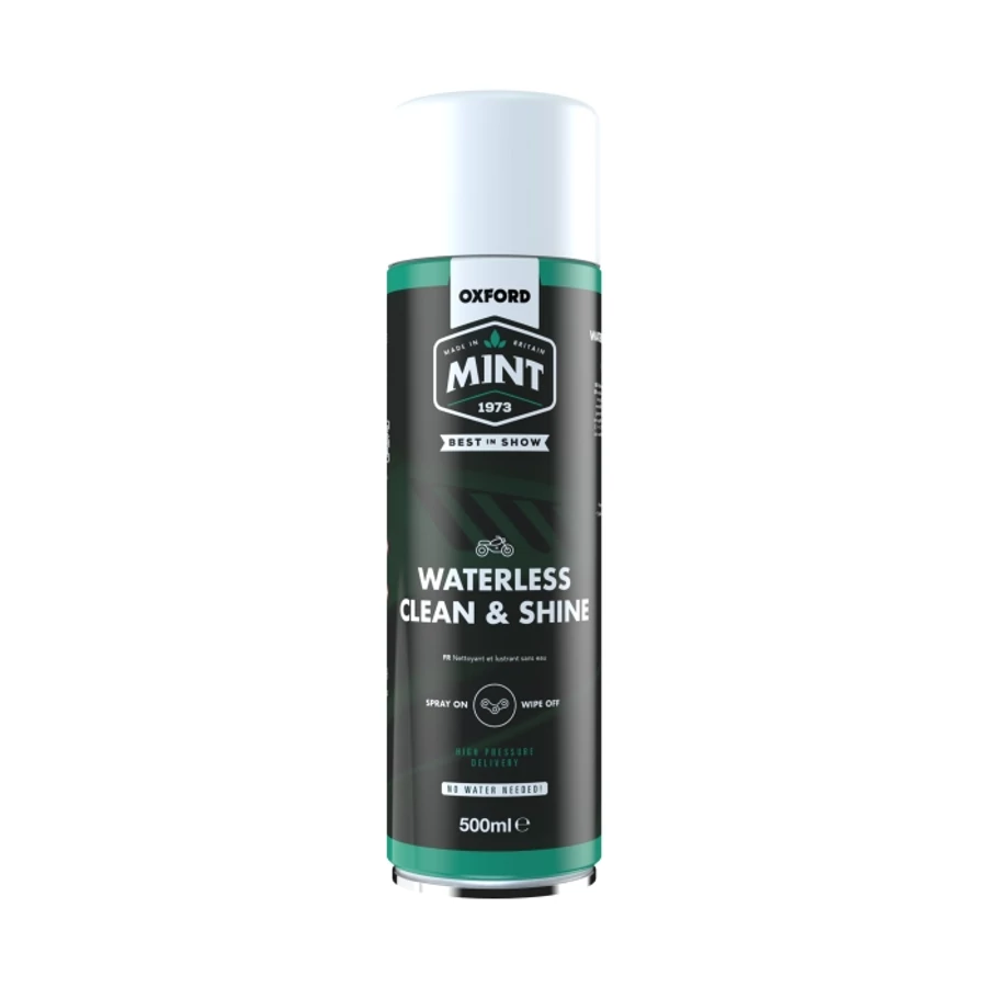 A Mint vízmentes tisztítószer egy gyorsan és egyszerűen használható tisztítószer, amihez nem lesz szükséged vízre. Amikor a motorodnak két mosás között egy kis felfrissítésre van szüksége, a Mint vízmentes tisztítószer biztonságosan eltávolítja a koszt, szennyeződéseket, port, bogármaradványokat, miközben vízlepergető, élénk és csillogó felületet hagy maga után.